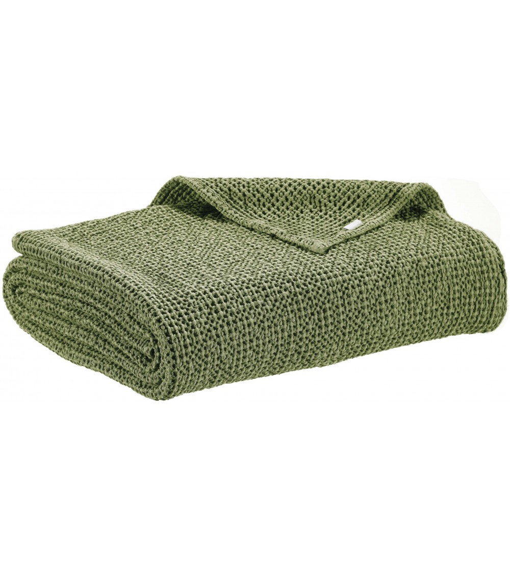 Jeté de lit en coton avec un tombé fluide et agréable. Tissage en nid d'abeille.