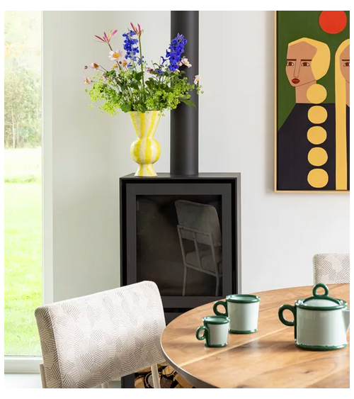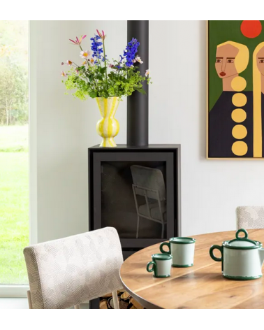 Vase en grès jaune et blanc, qui sublimera vos bouquets de fleurs séchées ou fraiches.