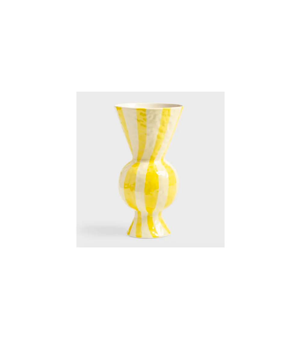 Chic and graphic, this vase with twisted stripes will bring life into your home. The hand-painted pattern and slightly irregular lines give this vase a unique look.